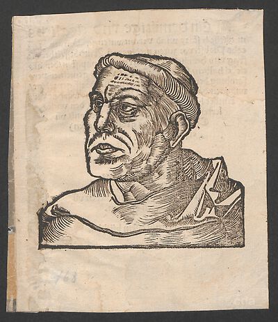 Das expressiv anmutende Brustbildnis eines monastisch gekleideten, nach links gewandten Mannes mit Tonsur vor freiem Hintergrund wurde wohl in der Offizin Amandus Farckalls in Colmar zwischen 1521/22 und 1523 zweimal zur Illustration von Druckschriften genutzt. Bereits Ficker zog Vergleiche zwischen dem vorliegenden Holzschnitt und dem unikal vorliegenden Holzschnitt I.1D5, der