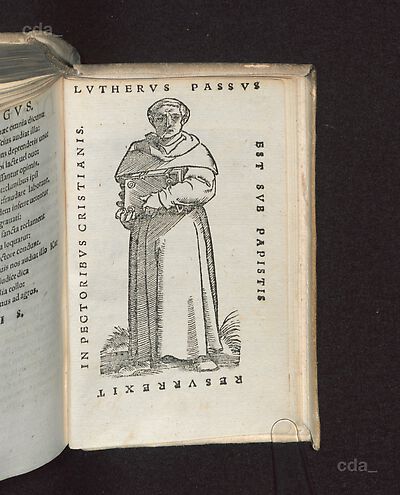 • Martin Luther als Augustinermönch im Ordenshabit, Ganzfigur, stehend, frontal, mit Buch, nach August 1521